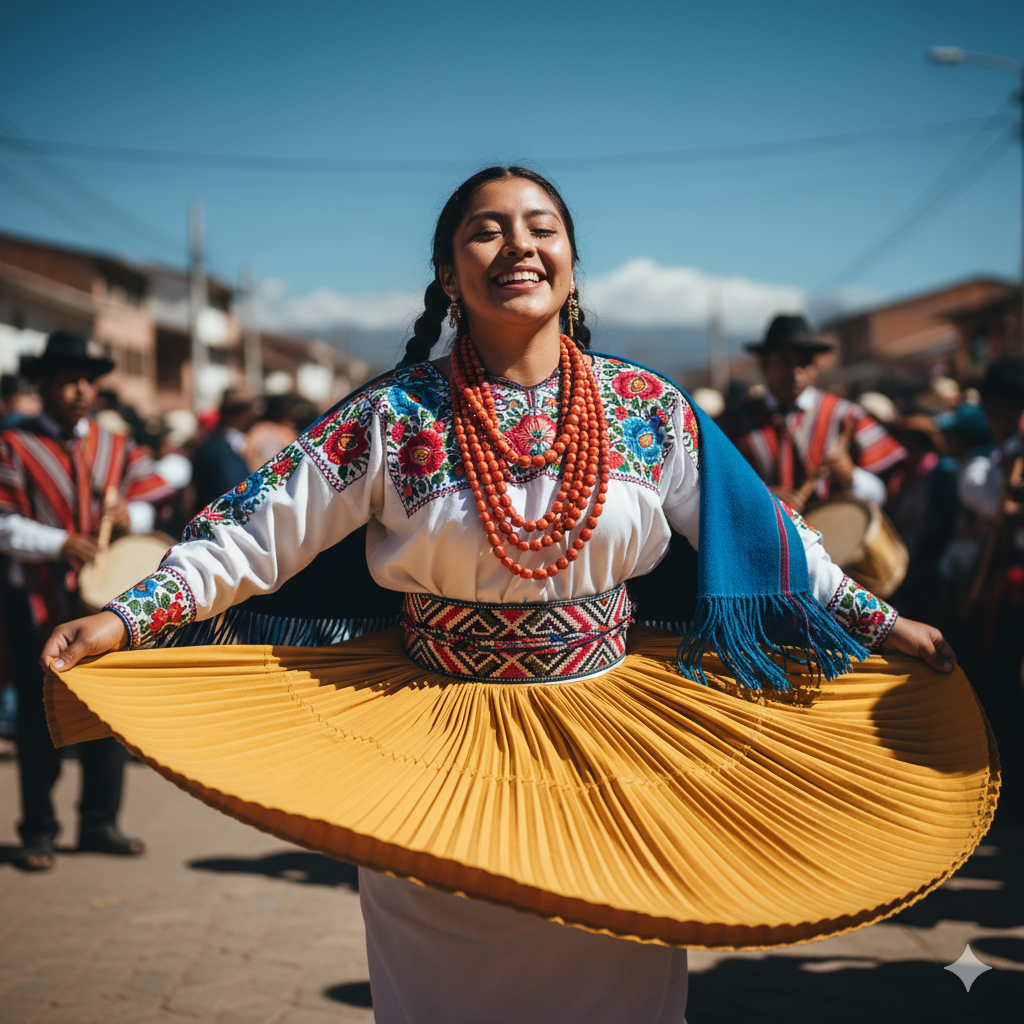 Cayambeña (nebo také tanec z oblasti Cayambe) je hlubokým, zemitým pulzem samotných And. Tento tanec, pocházející z kantonu Cayambe v provincii Pichincha, není jen folklorním představením; je to živý, pulzující rituál domorodého etnika Kayambi, který po staletí vzdává hold slunci, úrodě a Matce Zemi (Pachamamě).