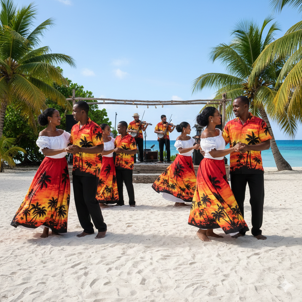- Kreolizovaná aristokracie: Jde o adaptaci evropských společenských tanců (kvadrila, kontratance, polka, valčík), které na ostrovy přivezli francouzští kolonisté.
