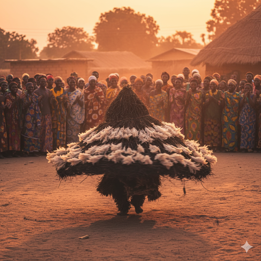 Tento vertikální tvar symbolizuje spojení mezi zemí a nebem. Na vrcholu těchto konstrukcí jsou umístěny vyřezávané a malované dřevěné hlavy, které představují buď mýtické bytosti, předky, nebo symbolické postavy z kmenových legend. Tanec byl historicky prováděn tajnými mužskými bratrstvy a jeho smyslem bylo zajistit ochranu komunity, úspěšnou sklizeň nebo doprovodit mladé muže při jejich vstupu do dospělosti.