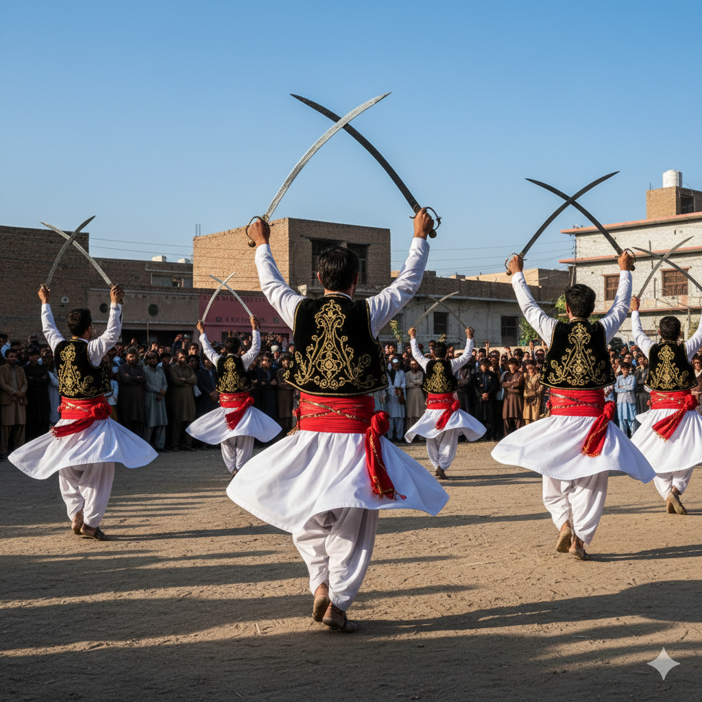 Válečný původ: Tanec sloužil jako fyzická příprava a bojový dril pro paštunské válečníky. Každý pohyb simuluje bojovou akci.
