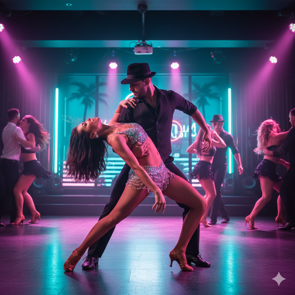 Tanec "On 1" (Na první dobu): Zásadní rozdíl oproti NY stylu. Tanečníci přenášejí váhu (tzv. break step) hned na první, nejsilnější úder v taktu. To dává tanci okamžitou výbušnost a "tah na branku".