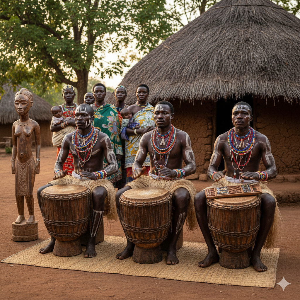 Mluvící bubny (Ngoma): Bubny nejsou jen pro rytmus; jejich tóniny napodobují jazyk Luba. Dobrý bubeník dokáže v rytmu "vyslovovat" jména předků nebo králů.