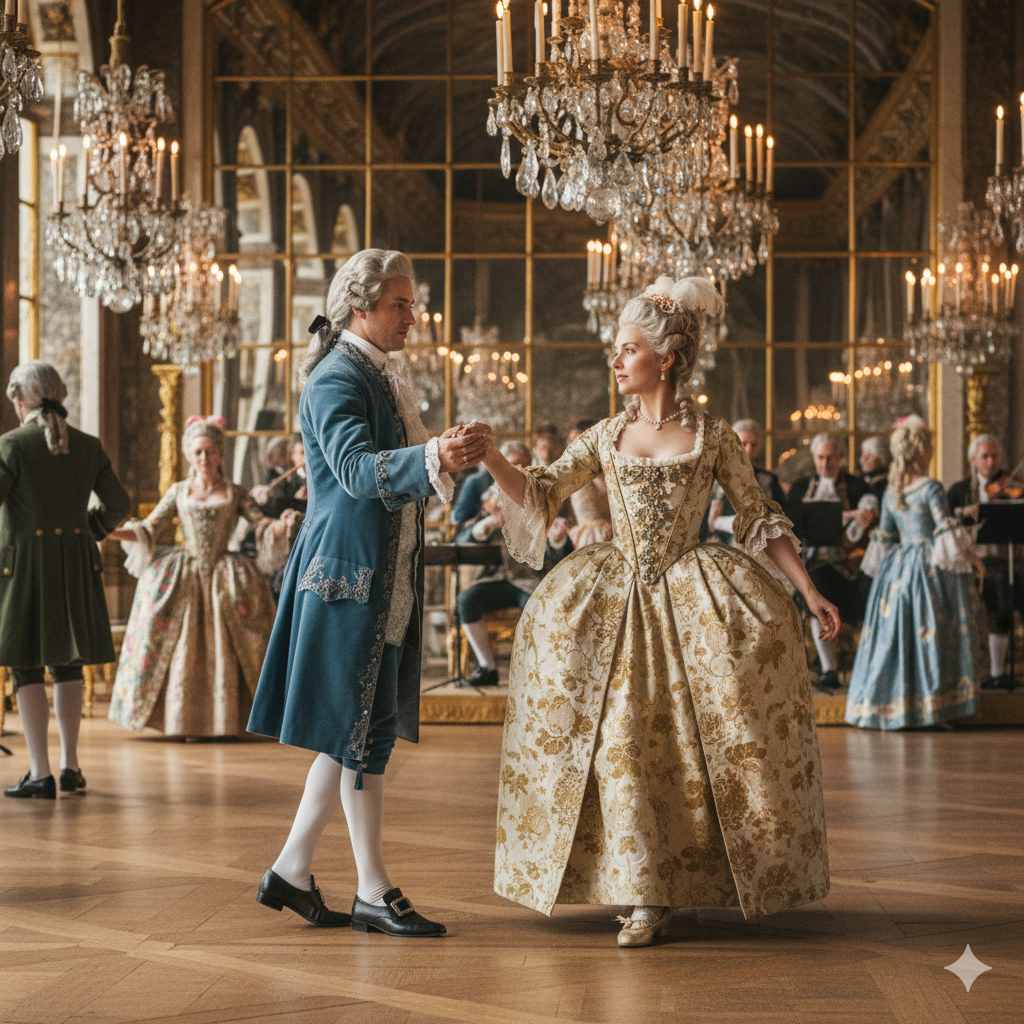 V 17. a 18. století nebyl Menuet jen zábavou, byla to zkouška charakteru a společenského postavení. Tanec byl postaven na přísné geometrii – tanečníci se pohybovali po trajektoriích ve tvaru písmene S nebo Z. Klíčem byla kontrola těla. Tanečník musel působit uvolněně, zatímco prováděl extrémně složité pohyby nohou. Správné smeknutí klobouku, hloubka úklony a úhel pohledu byly přesně definovány. Jedno chybné zakopnutí mohlo znamenat společenskou sebevraždu a konec kariéry u dvora.