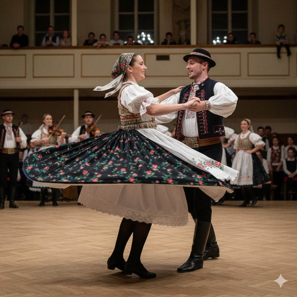 Vrták: Specifická, velmi rychlá varianta obkročáku typická pro určité regiony (např. moravské Kopanice), kde se pár točí s extrémní frekvencí na velmi malém prostoru.