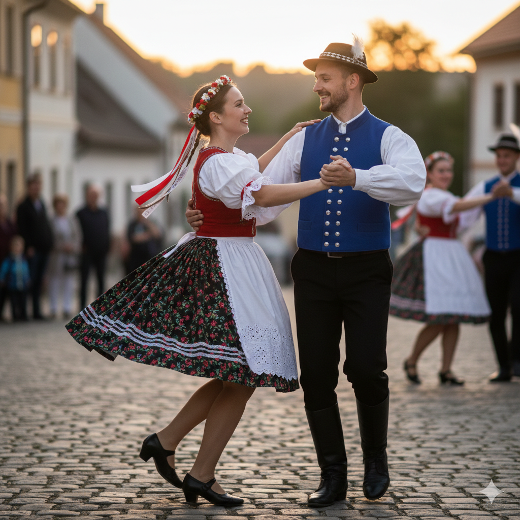 Polka je jedním z nejznámějších a nejrozšířenějších lidových tanců na světě. Ačkoli je často mylně spojována s Polskem, jde o tanec s jasnými kořeny v českých zemích. Polka je charakteristická svým rychlým, poskočným pohybem a typickým 2/4 taktem a představuje symbol radosti, energie a bezstarostnosti.