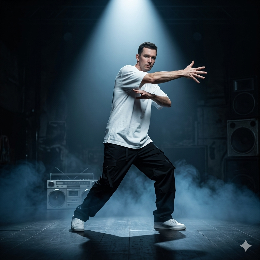 - Tutting: Vytváření geometrických obrazců a pravých úhlů pomocí dlaní a paží.