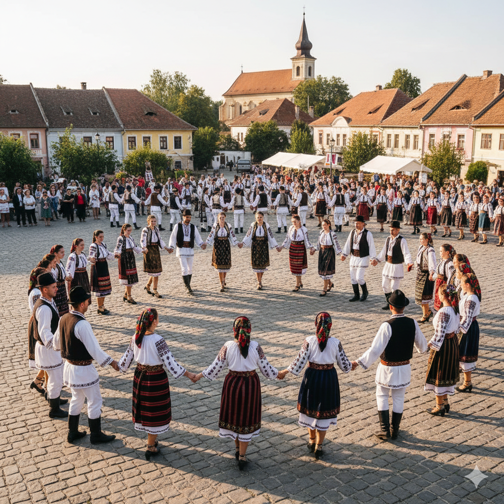 - Hora Unirii (Hora sjednocení): Slavná patriotická píseň, která se tančí na oslavách národního sjednocení.