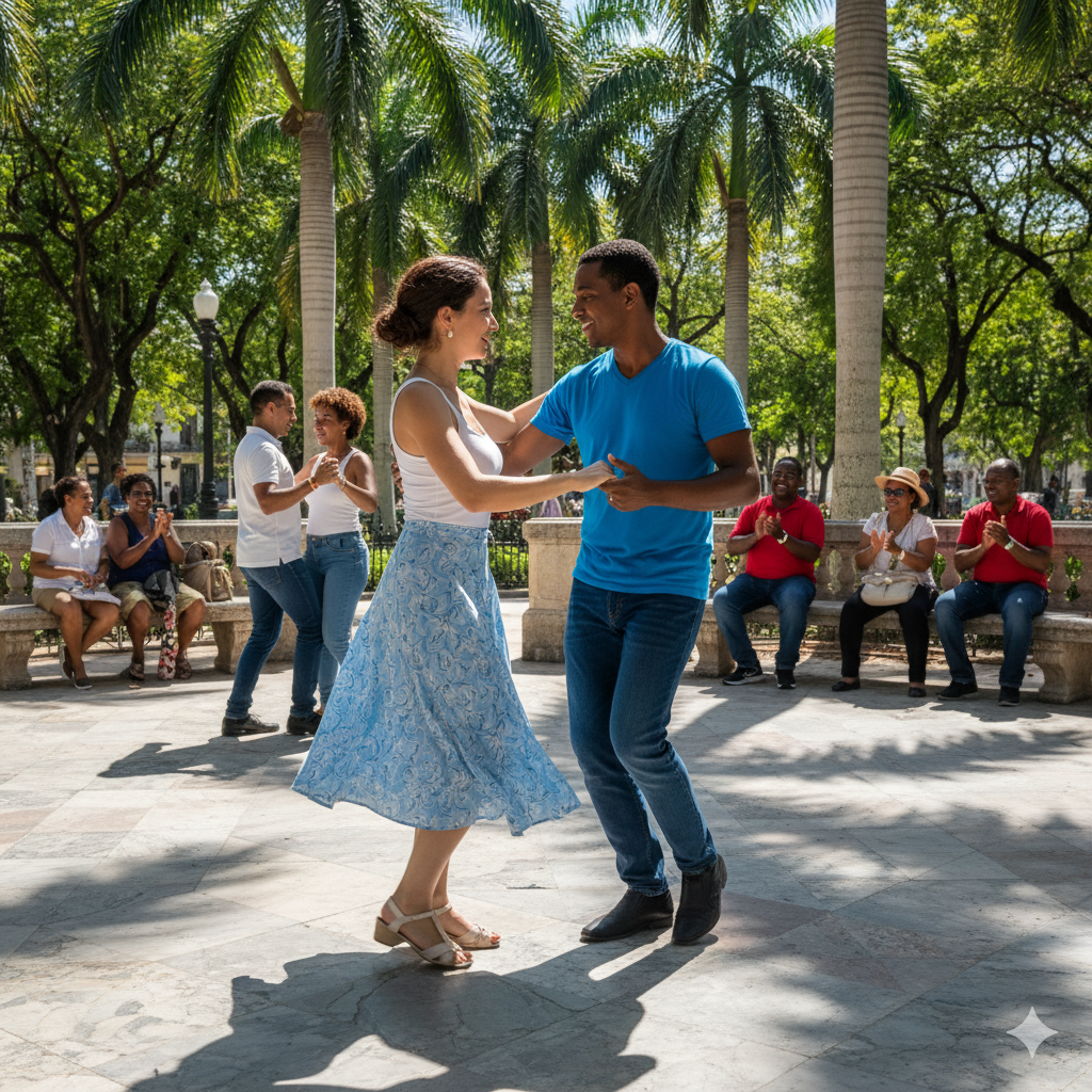 Casino (ve světě známé spíše jako Salsa Cubana) je jejím moderním, společenským a neuvěřitelně hravým potomkem. Zapomeňte na lineární tanec z New Yorku; kubánské Casino je tanec v kruhu, plný uzlů, smíchu a neustálého pohybu, který odráží schopnost Kubánců improvizovat a radovat se i v těžkých časech.