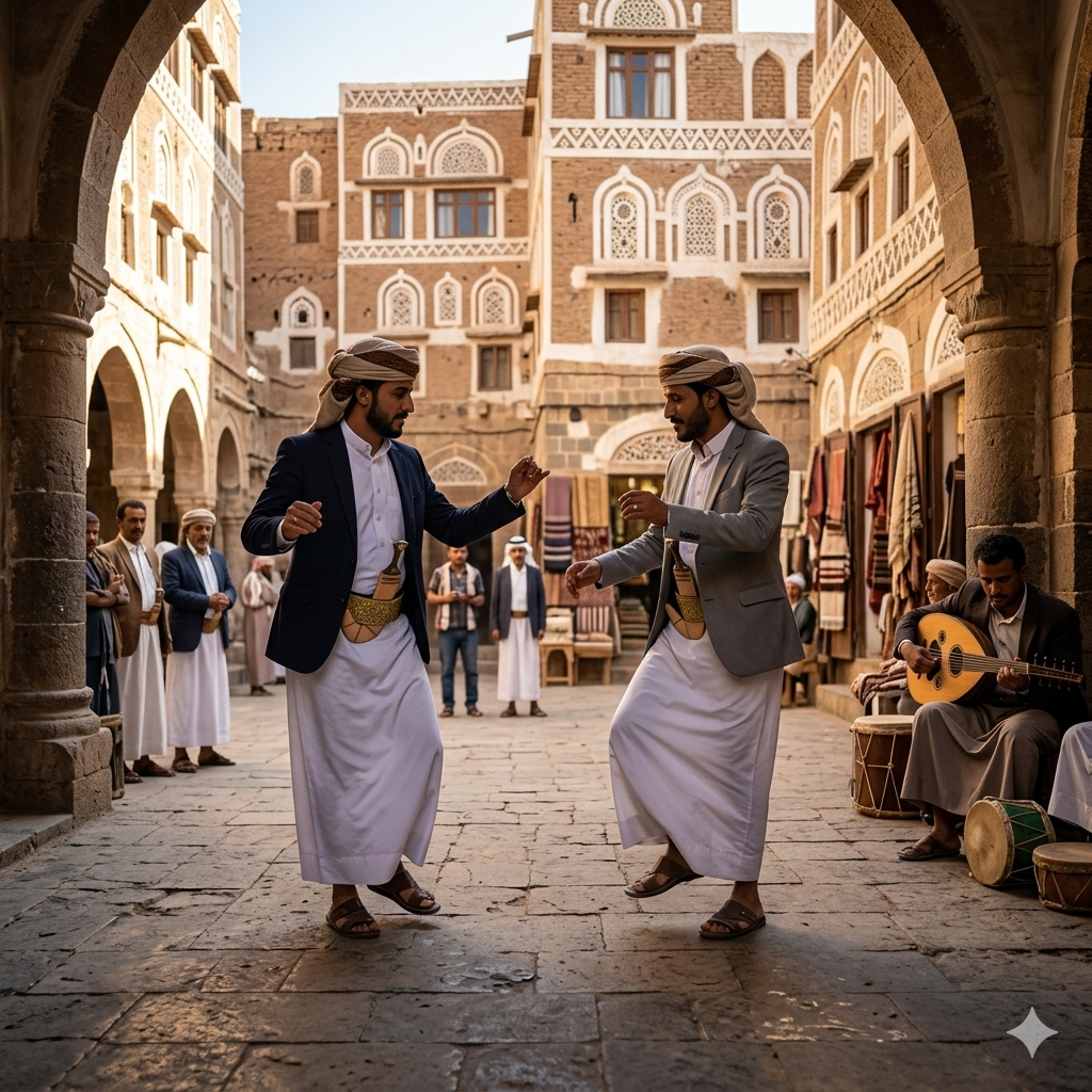 Zatímco samotný tanec je vizuálně strhující, jeho historie je neoddělitelná od hudebního stylu Song of San'á, který byl organizací UNESCO uznán jako Mistrovské dílo ústního a nehmotného dědictví lidstva. V 20. století prošel San'ani fází národního obrození. Stal se symbolem jemenské identity, který sjednocoval sever a jih země. I v dobách politických nepokojů zůstalo San'ani společným jmenovatelem, který Jemenci tančí na svatbách bez ohledu na své politické přesvědčení.