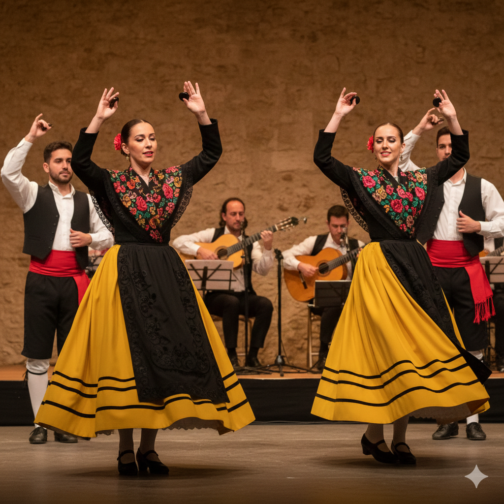 - Seguidillas Gallegas: Severní španělská verze, kde se místo kytar často setkáte s doprovodem dud (gaita), což tanci dodává úplně jinou, keltskou příchuť.