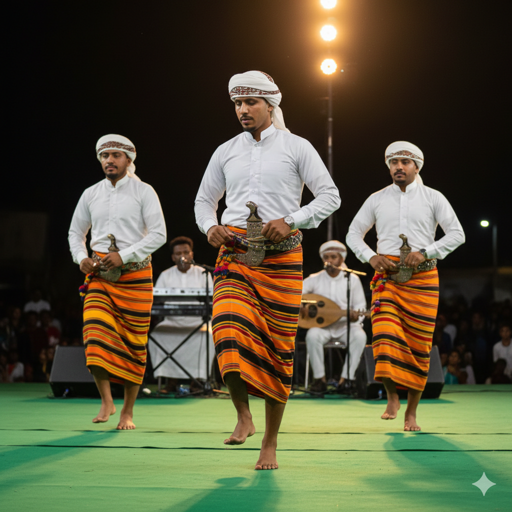 Společný tanec Sharh je v jemenské společnosti vnímán jako potvrzení přátelství a vzájemného respektu mezi tanečníky.