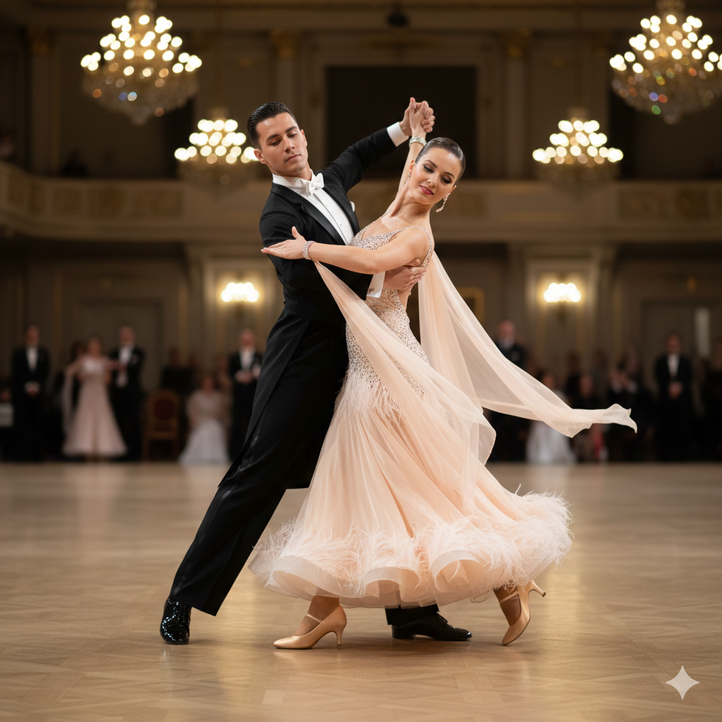 - Stoupání a Klesání (Rise and Fall): Používá se podobně jako ve Waltzu, ale mnohem jemněji a plynuleji. Vertikální pohyb je diskrétnější a má za cíl pouze podporovat dlouhý, švihový krok (Long Stride), nikoli vytvářet zřetelné houpání jako ve Waltzu. To je důležité, protože jakékoliv viditelné Bounce by narušilo plynulost.