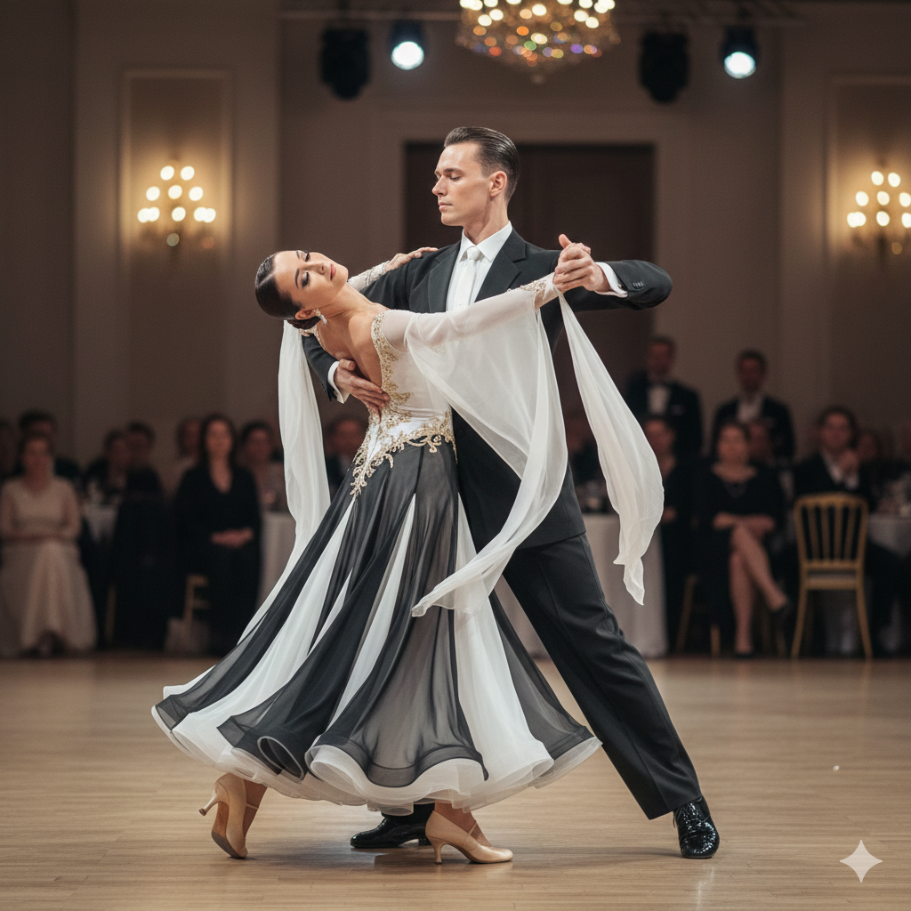 - Hudba a rytmus: Tančí se na třídobou hudbu (3/4 takt), typicky pomalé až střední tempo, s důrazem na romantické a melodické orchestrální skladby.